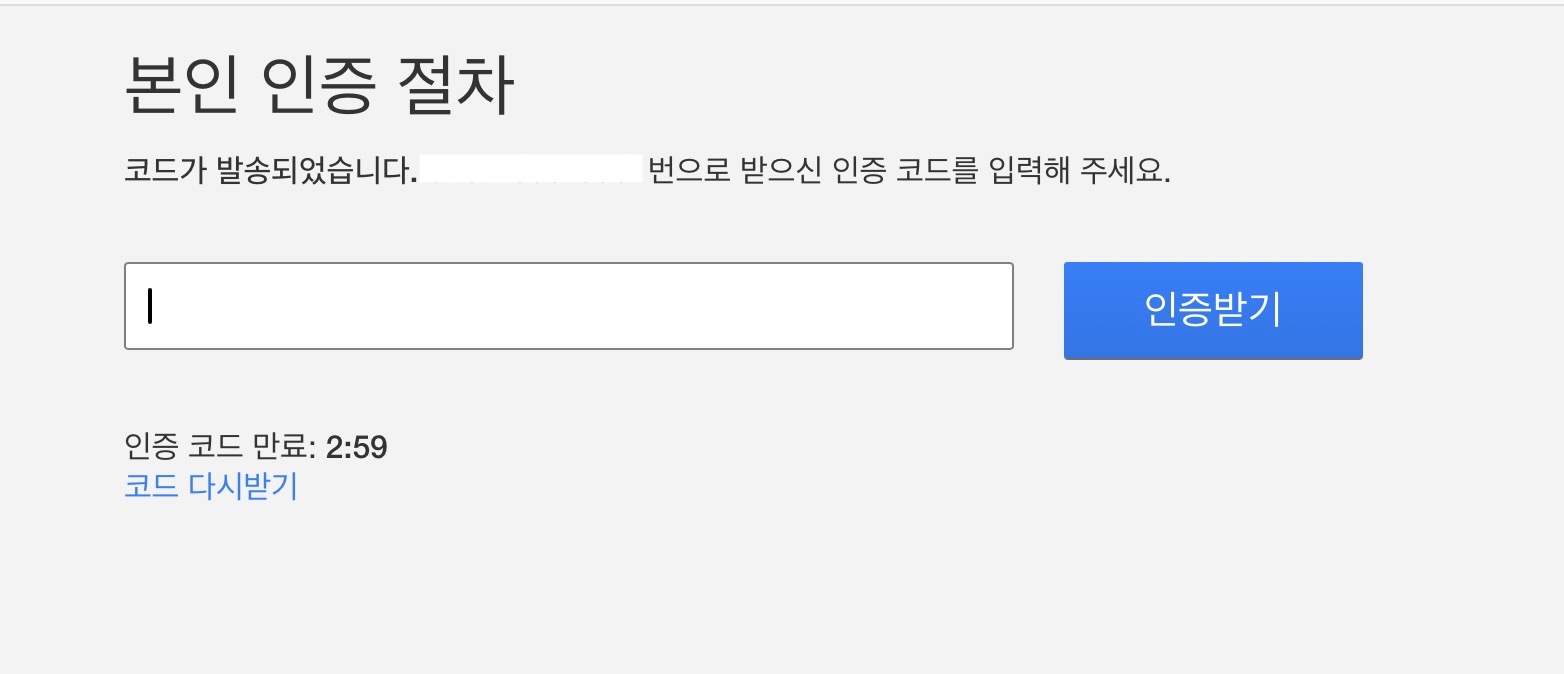 - 전송된 인증번호를 확인한 후, 해당 번호를 입력란에 입력합니다.